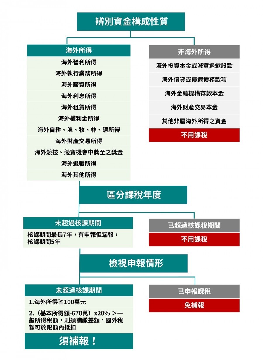 三個步驟明白匯回的海外資金是否課稅,如下圖所示: